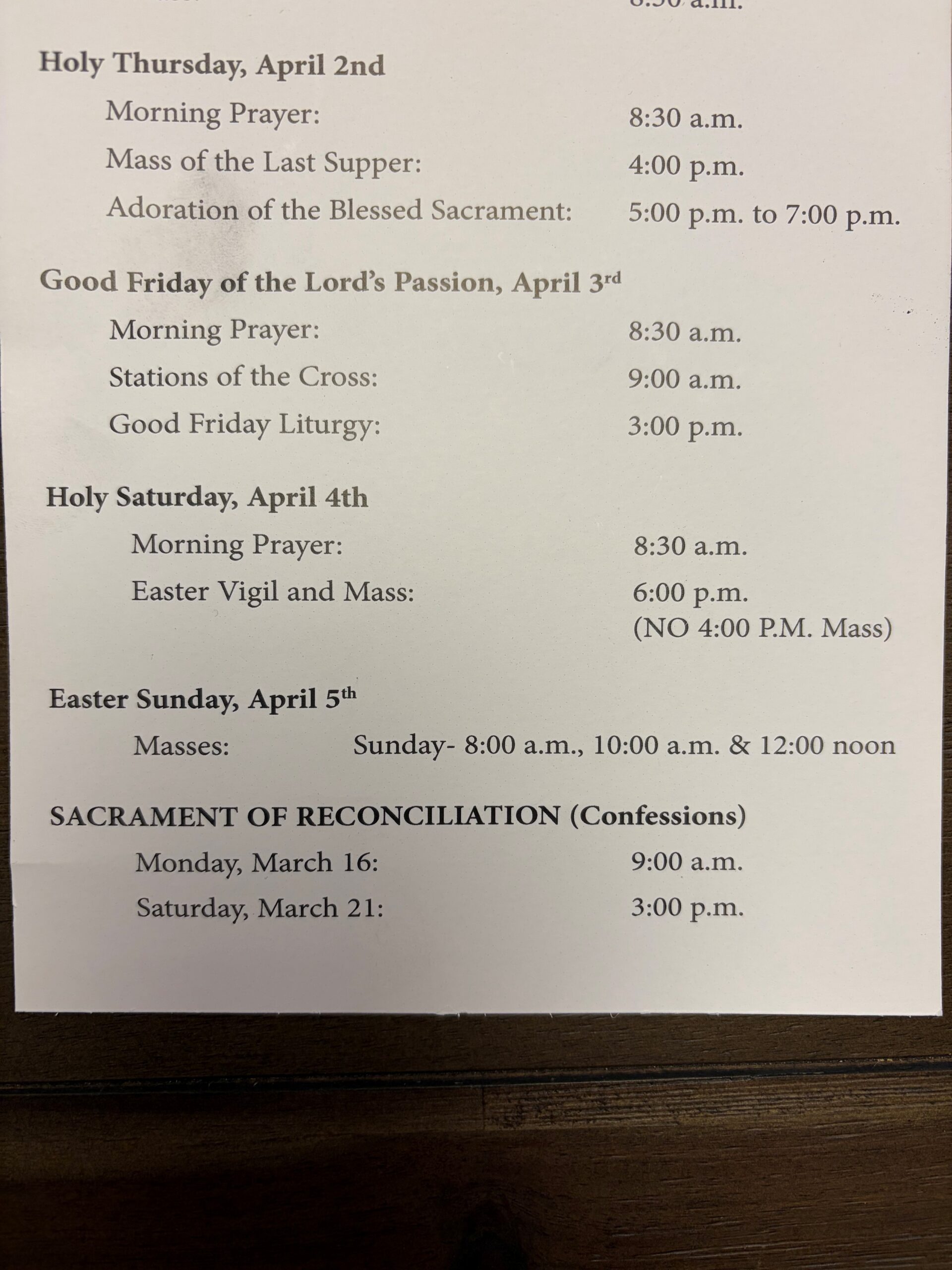 Mass Schedule